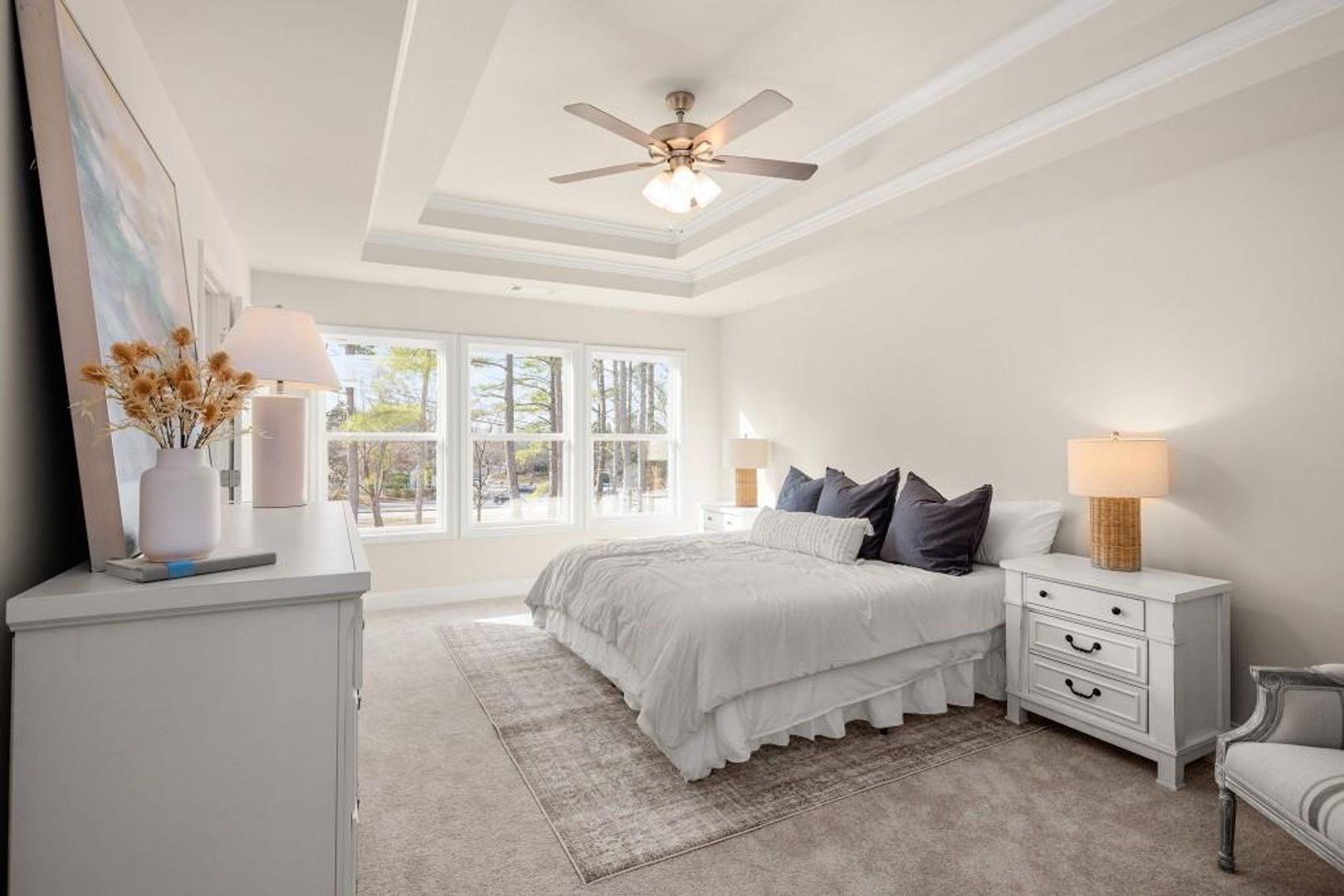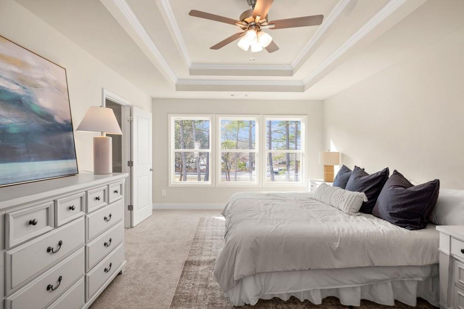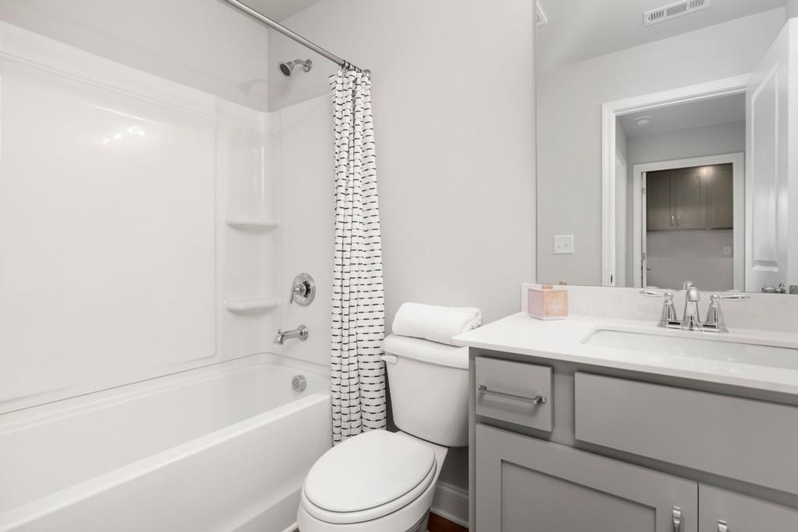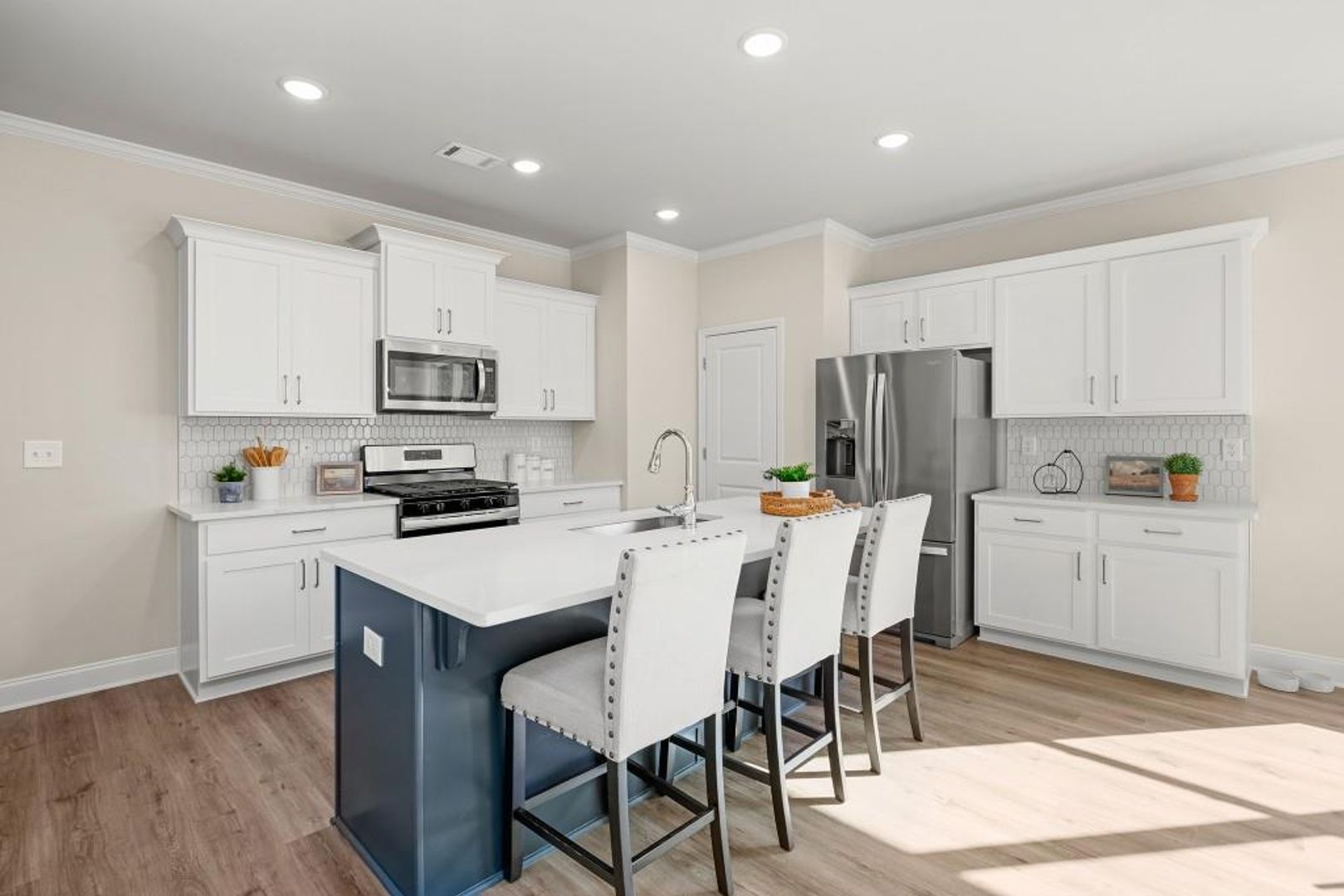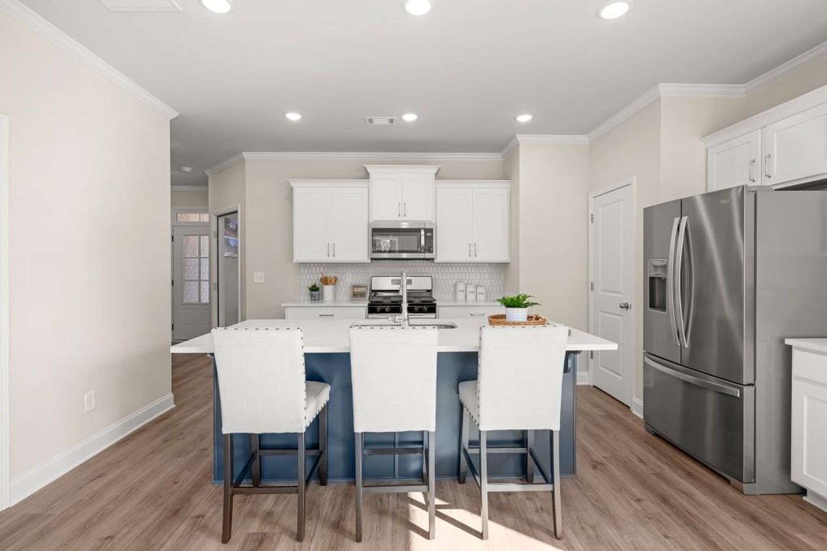 Welcome to this stunning like-new 2024 townhome for rent in Duluth, Georgia, located just steps from the historic Downtown Duluth Square. Perfect for professionals or small families seeking a balance of style and convenience, this home offers modern design, energy-efficient construction, and a walkable lifestyle surrounded by restaurants, shops, and local festivals. The open-concept main level features luxury vinyl plank flooring, a spacious family room with a modern electric fireplace and shiplap surround, and a seamless flow to the dining area and gourmet kitchen. The kitchen shines with white shaker cabinets, stone countertops, tile backsplash, and stainless-steel appliances, ideal for cooking and entertaining. Step outside to your covered rear porch—a private outdoor space for morning coffee or relaxing evenings. Upstairs, the primary suite offers double tray ceilings, a massive walk-in closet, and a spa-inspired bath with quartz double vanity, frameless glass shower, and designer tile. A versatile loft area provides the perfect home office, media room, or reading nook, separating the spacious secondary bedrooms for extra privacy. Additional highlights include a second full bath with quartz countertops, an upstairs laundry room, and a one-car garage with driveway parking. Residents enjoy maintenance-free living, a community swimming pool, and easy access to Rogers Bridge Park, the Chattahoochee River, and major employers along the I-85 tech corridor.